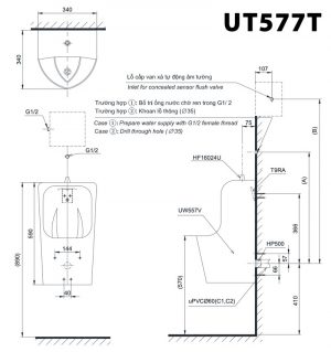 Thông số kỹ thuật TOTO UT557T – Bồn tiểu nam treo tường
